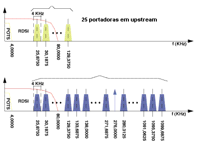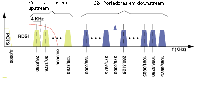 Para o funcionamento da ADSL apenas são utilizados 248 canais, porque os primeiros 6 (canal 0 a canal 5) não são utilizados, visto o serviço telefónico convencional analógico (POTS) e digital (RDIS) se situarem junto às frequências destes canais.